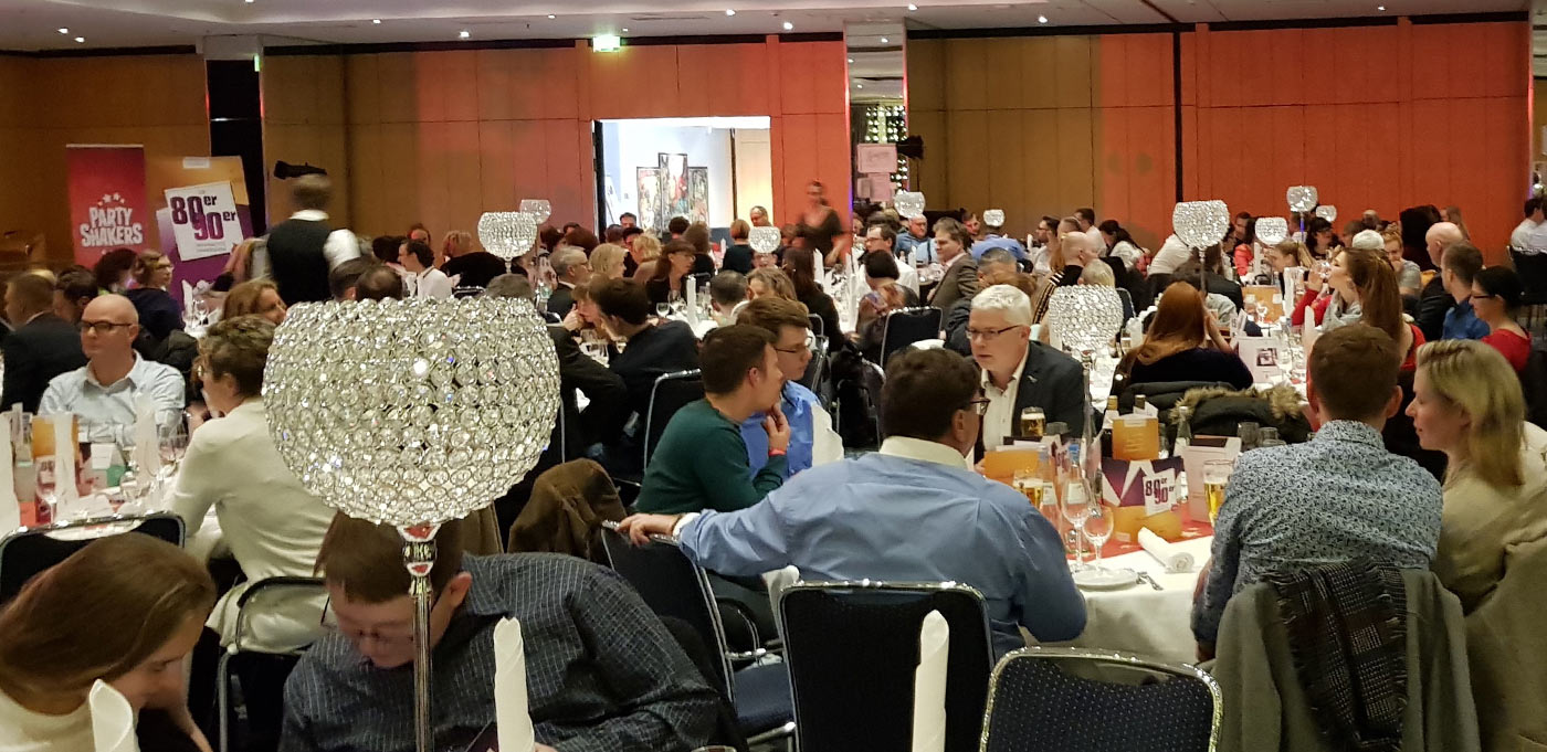 Den Start machte ein großes Buffet mit leckeren Speisen, Getränken und Desserts, bis es dann langsam zur stimmungsvollen Bühnenshow mit bekannten Liedern der 80er und 90er Jahre überging. Tanzeinlagen gab es dann natürlich auch.
